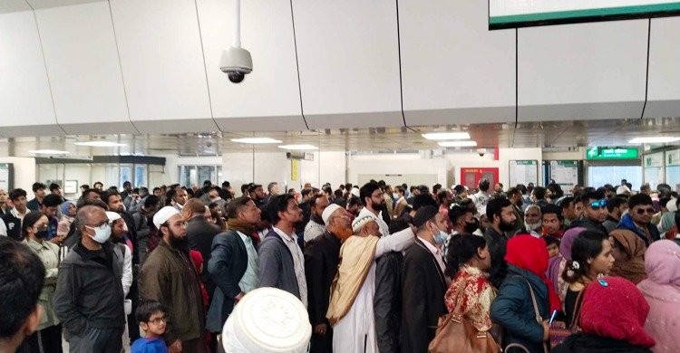 অফিস শেষে মতিঝিল স্টেশনে যাত্রীদের উপচেপড়া ভিড়